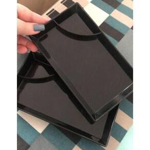 Garantia: 90 dias / Peso: 1.128kg / Cor predominante: preto / Ref: 7798138193079 Dimensões de cada prato: 19,5cm (C) x 11,2cm (L) x 2,5cm (A); Material: polipropileno; Possui compartimento para molho shoyu; Conteúdo: 12 pratos.