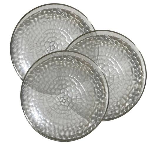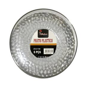 Contém: 12 unidades Pratos Refeição Redondo Transparente Acrílico Borda Prata 22,7cm