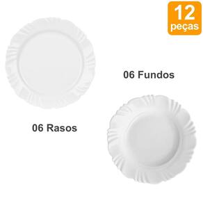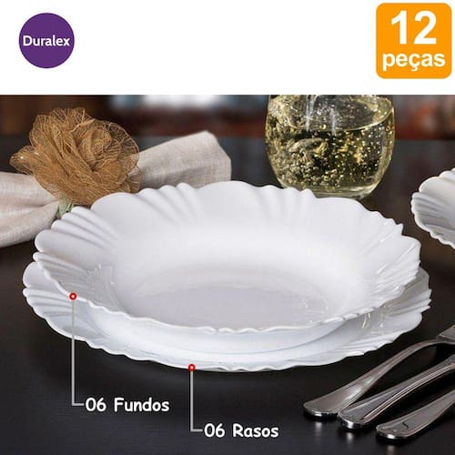 Kit 12 Pratos Vidro Duralex Opaline Pétala - 6 Rasos e 6 Fundos