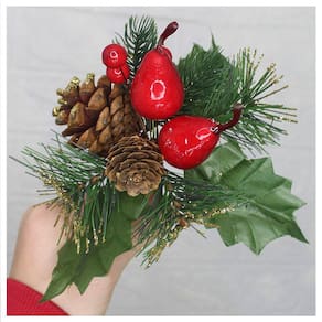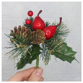Possui 12 Ramos, com 2 Pera, 2 Pinhas, Cada peça. Altura: 16 cm Cor: Verde, Vermelho. Material: Plástico, Isopor.
