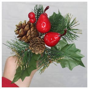 Kit 12 Ramos Pera Decoração De Natal Artificial Com Brilho 16cm -