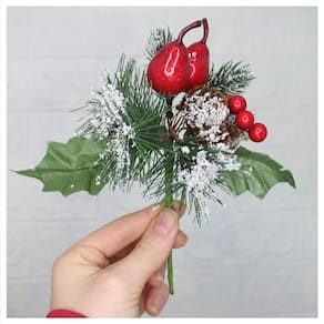 Possui 12 Ramos, com 2 Pera, 2 Pinhas, Cada peça. Altura: 17 cm Cor: Verde, Vermelho, Branco. Material: Plástico, Isopor