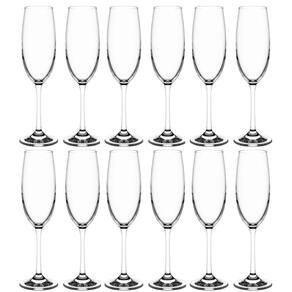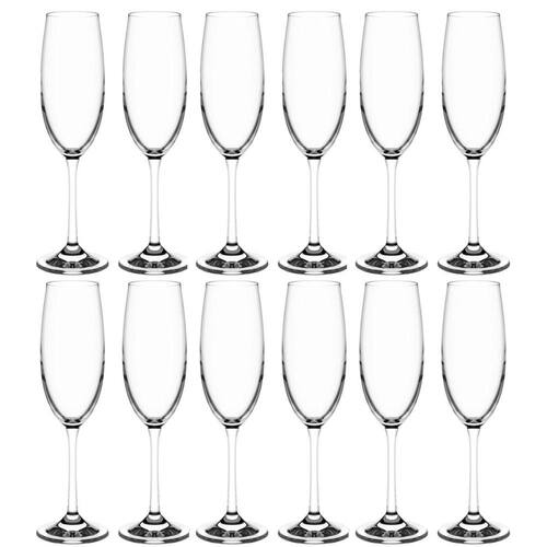 Kit 12 Taças de Champanhe 220ml Espumantes em Cristal Copos Titânio Sense