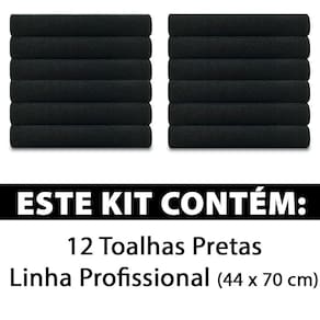 Kit 12 Toalhas Linha Profissional 100% Algodão Salão Manicure Academia SPA 44x70cm Marcotex Preto - Emcompre