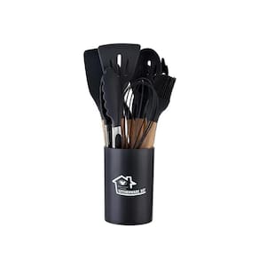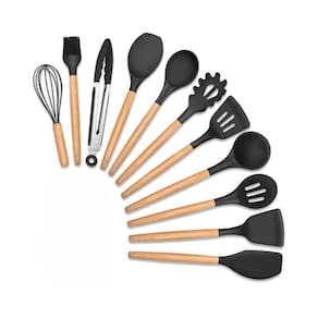 Kit de 12 Utensílios de Cozinha em Silicone com Cabo de Madeira