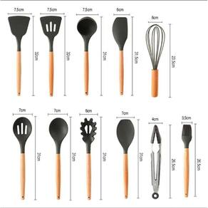 Kit de 12 Utensílios de Cozinha em Silicone com Cabo de Madeira