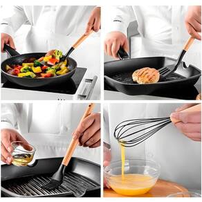 - Material Premium: Silicone resistente a temperaturas de -40ºC até +230ºC, livre de BPA, com cabos em madeira MDF para um manuseio confortável e seguro.