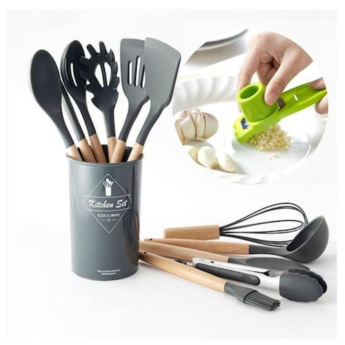 NA COMPRA DO KIT 12 UTENSÍLIOS, VOCÊ LEVA UM RALADOR DE ALHO E GENGIBRE QUE NÃO MACHUCA AS MÃOS!!
