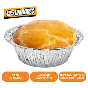 Forma descartável de alumínio para empadas, embalagem com 125 unidades. Própria para empadas, pastel de belém, bolinhos, mini tortas, quindim, quiches e quitutes diversos.