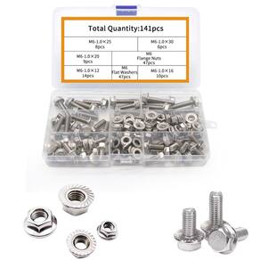 141 parafusos e porcas sextavadas flangeadas tamanhos variados