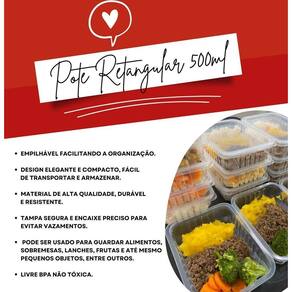 LOJA OFICIAL EMBANET. Pote Retangular 500ml tornando sua rotina mais ágil, aumentando a vida útil de alimentos. Embalagens resistente ao frio e ao calor, vão direto do freezer ao micro-ondas sem deformar ou contaminar os alimentos preservando o aroma e o sabor. Oferece espaço suficiente para armazenar suas refeições, desde saladas, massas, carnes, legumes e outros pratos. Traz diversos benefícios e diferenciais. Seja para levar suas refeições ao trabalho, escola, academia ou viagens, esse pote é uma opção prática e saudável. Ele ajuda você a se manter na dieta, controlar as porções e economizar dinheiro ao preparar suas próprias refeições. Outro diferencial do pote marmita é sua versatilidade. Além de armazenar alimentos, ele também pode ser para guardar sobremesas, lanches, frutas, snacks e até mesmo pequenos objetos, como bijuterias, medicamentos, entre outros. Itens Inclusos: 144 unidades de potes 144 unidades de Tampas Especificações: Medidas externas: 164x120x52mm Medidas internas: 128x83x46mm Material: PP Capacidade: 500ml Na EMBANET você encontra materiais de alta performance, durabilidade e ótimo acabamento, não tóxico e ecologicamente correto. Oferecendo um ótimo custo benefício. Realizamos o envio de forma rápida e segura, para que receba seu produto em perfeitas condições, evitando problemas ou danos durante o transporte. Garantindo qualidade e satisfação aos nossos clientes. Trabalhamos com diversos tipos de embalagens. Veja mais anúncios do vendedor. Marca: Não Informado Ean: 7794074845065