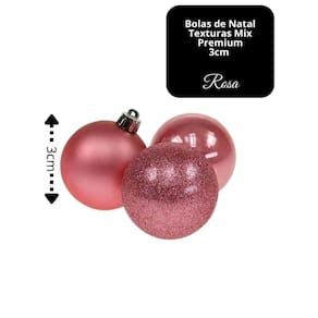 Cada bola possui 3cm de diâmetro, fabricada em plástico PP resistente, com cordão incluso para fácil fixação. O acabamento em tons rosê cria uma atmosfera suave e refinada, perfeita para quem busca uma decoração harmoniosa e sofisticada.