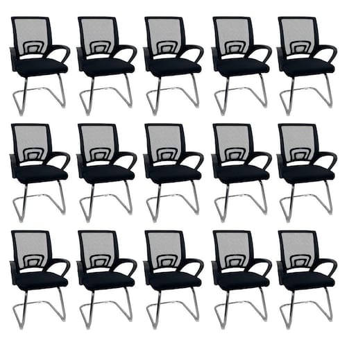 Kit 15 Cadeiras De Escritório Begonia Oficial Tela Mesh Fixa Preto