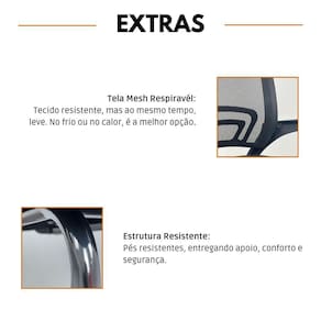 Conforto para Longas Horas O assento estofado em espuma com revestimento em tecido proporciona uma experiência ergonômica, enquanto o encosto em tela Mesh garante maior ventilação.