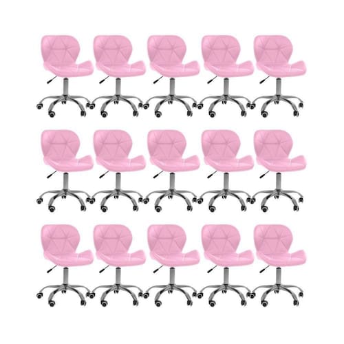 A cadeira conta com uma base giratória cromada e rodinhas. Isso facilita consideravelmente a sua locomoção no ambiente de trabalho.