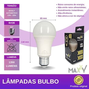 Com eficiência luminosa de 90lm/W, a Lâmpada Led Bulbo 15W Bivolt 6500K E27 Branco Frio possui dimensões de 65mm diâmetro x 118mm altura e peso líquido de 110g. Além disso, ela substitui uma lâmpada de 90W, proporcionando uma economia significativa de energia.