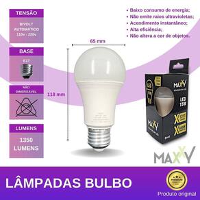 Com eficiência luminosa de 90lm/W, a Lâmpada Led Bulbo 15W Bivolt 6500K E27 Branco Frio possui dimensões de 65mm diâmetro x 118mm altura e peso líquido de 110g. Além disso, ela substitui uma lâmpada de 90W, proporcionando uma economia significativa de energia.