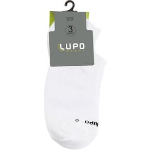 Kit com 3 meias Sapatilhas Invisíveis, todas brancas, 67% Algodão, 30% Poliamida, 3% Outras fibras, qualidade Lupo Sport. Tamanho P que corresponde do 45 a 48.