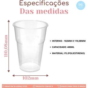 LOJA OFICIAL EMBANET. Copo Supremo Prafesta de 400ml É ideal para você que deseja realizar aquela festa com os amigos, familiares ou tem algum estabelecimento comercial ligado à gastronomia, como restaurantes, lanchonetes e food trucks, por exemplo. Copo de alta qualidade muito em festas para sucos, refrigerante, açaí, cerveja, chopp, drinks etc. Muito utilizado também em para doces, como o copo da felicidade Ideal para você empreendedor que trabalha na área da Gastronomia tenha uma maior facilidade em terminar suas delícias, como sobremesas geladas, saladas verdes ou sorvetes, de uma maneira mais charmosa e caprichada, salada de fruta, Algodão doce, bolo no pote e muito mais. Contém: 150 unidades de copo 400ml Dimensões copo: Interno - 102mm x 110.08mm Na EMBANET Realizamos o envio de forma rápida e segura, para que receba seu produto em perfeitas condições, evitando problemas ou danos durante o transporte. Garantindo qualidade e satisfação aos nossos clientes. Trabalhamos com diversos tipos de embalagens. Veja mais anúncios do vendedor. Marca: Não Informado Ean: 7793810171093