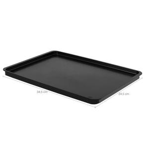 Garantia: 90 dias / Peso: 3,296kg / Cor predominante: preto / Ref: 7798138163683; Dimensões de cada bandeja: 34,5cm (C) x 24,5cm (L) x 1,5cm (A); Dimensões internas de cada bandeja: 32,5cm (C) x 23,5cm (L) x 1cm (A); Material: polipropileno, BPA free; Conteúdo: 16 bandejas retangulares Coza.