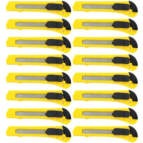 Kit 16 Estilete De Corte Multiuso 18 mm Tradestar Estilete de Corte Multiuso 18mm Tradestar O Estilete de Corte Multiuso 18mm Tradestar é uma ferramenta essencial para suas tarefas de corte. Com a marca Tradestar, você pode contar com qualidade e desempenho excepcionais. Este estilete possui uma lâmina afiada de 18mm que permite cortes precisos e limpos em uma variedade de materiais. Seja papel, papelão, tecido ou plástico, o Estilete de Corte Tradestar proporciona resultados profissionais. Com um design ergonômico, o cabo oferece conforto e aderência durante o uso, reduzindo a fadiga das mãos e proporcionando maior controle sobre o corte. Além disso, possui um mecanismo de trava seguro para garantir sua segurança quando não estiver em uso. Seja para trabalhos de artesanato, escritório, marcenaria ou projetos DIY, o Estilete de Corte Multiuso 18mm Tradestar é a escolha certa. Tenha uma ferramenta confiável e durável que facilita suas tarefas de corte. Invista no Estilete de Corte Multiuso 18mm Tradestar e experimente a qualidade e eficiência em suas atividades de corte. Adquira o seu agora e garanta resultados precisos e profissionais. 90 dias após a compra. Imagens meramente ilustrativas As tonalidades da cor do produto podem sofrer alterações de acordo com a tela que estiver usando para visualização. Marca: Não Informado