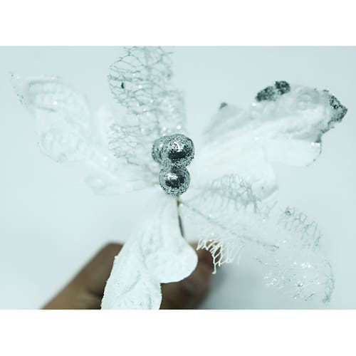 O cabo flexível e resistente permite uma integração harmoniosa em arranjos, guirlandas ou árvores, tornando-a versátil para qualquer cenário natalino. Esta flor não é apenas um adorno; ela é uma expressão de festividade e refinamento, garantindo que sua decoração capture o verdadeiro espírito e a elegância do Natal. Um toque de charme que promete ser o destaque em suas comemorações!