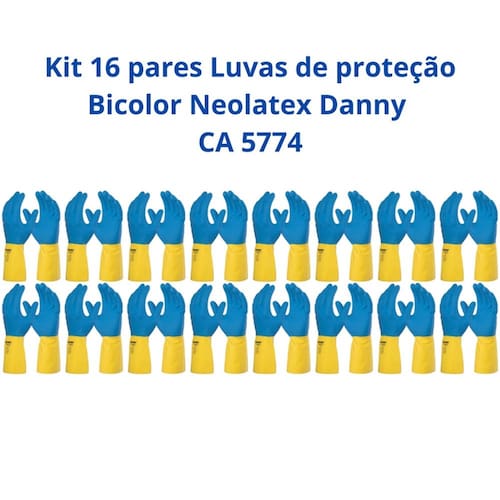 Kit 16 pares Luvas Bicolor Neolatex CA 5774 Resistência Química e Proteção Mecânica para as Mãos A Luva Bicolor Neolatex é ideal para atividades que exigem resistência química e proteção mecânica. Fabricada em látex natural, ela oferece alta durabilidade, flexibilidade e um ótimo conforto durante o uso, sendo perfeita para ambientes onde a proteção das mãos é fundamental.