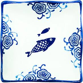 Características Gerais do Produto: - Material: Cerâmica - Modelo: Tigela Peixe - Cor: Azul; Branco - Dimensões aproximadas: Diâmetros 12cm X 14cm - Capacidade em litros: 100ml X 250ml Garantia: - Garantia do site - 1 Mês