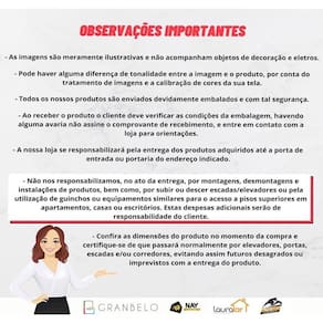 - Confira as dimensões do produto no momento da compra e certifique-se de que passará normalmente por elevadores, portas, escadas e/ou corredores, evitando assim futuros desagrados ou imprevistos com a do produto.