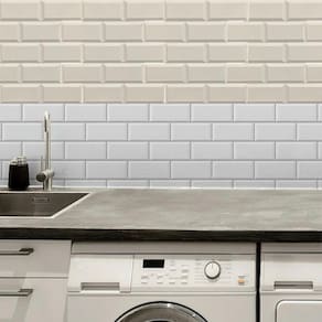 Kit 18 placas Revestimento 3D parede 50X50 tendencia cozinha Quantidade: 18 placas Material: Poliestireno Alto Impacto Modelo:tijolinho Retrô Cor: Brancas com acabamento fosco e corte a laser. Espessura: 0.5mm Tamanho; 50x50 cm Instalação: Fita dupla face, Cola Pu ou Cola de Contato.