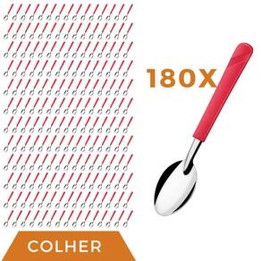 Conjunto de Colher As colheres de mesa da linha Luna são um conjunto elegante e funcional para qualquer ocasião. Com um cabo vermelho vibrante feito de plástico de alta qualidade, essas colheres são confortáveis de segurar e fáceis de identificar em meio a outros utensílios de mesa. O aço inox das colheres garante que elas permaneçam brilhantes por um longo tempo, enquanto o design elegante torna as colheres uma adição atraente à sua coleção de utensílios de cozinha.