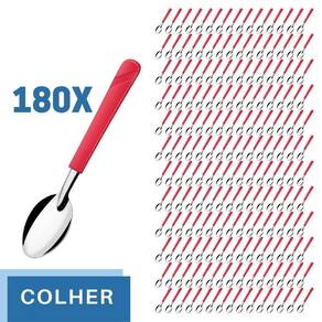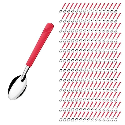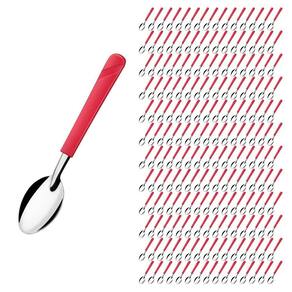 Conjunto de Colher As colheres de mesa da linha Luna são um conjunto elegante e funcional para qualquer ocasião. Com um cabo vermelho vibrante feito de plástico de alta qualidade, essas colheres são confortáveis de segurar e fáceis de identificar em meio a outros utensílios de mesa. O aço inox das colheres garante que elas permaneçam brilhantes por um longo tempo, enquanto o design elegante torna as colheres uma adição atraente à sua coleção de utensílios de cozinha.