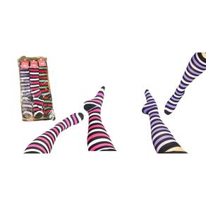 Kit 18Un Par Meias Femininas Até O Joelho Longas Listradas - Sortido - Único