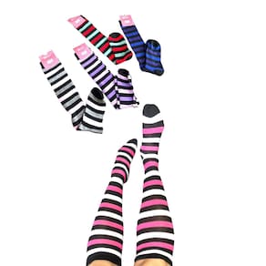Aplicações amplas, meias de coxa listrada são adequadas para o dia das bruxas, natal, dia da mãe, festa cosplay, shows, boas adições ao seu guarda-roupa e torná-lo mais bonito.