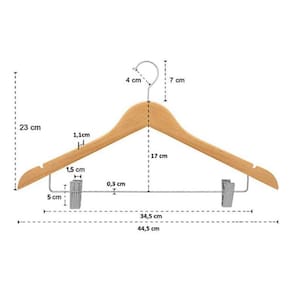 Cabide de Madeira com Gancho e Presilhas Cromadas - 18 unidades