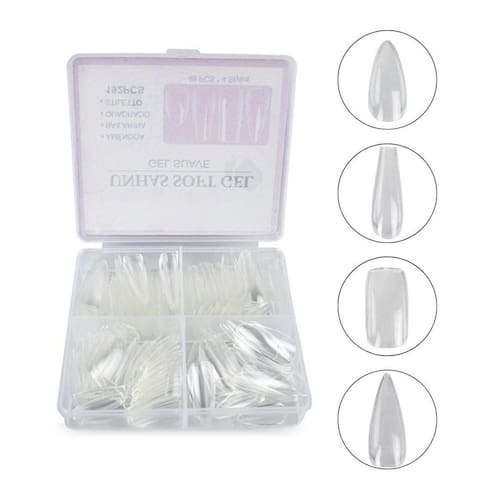 Características Principais: - 192 unidades; - 4 modelos de unhas diferentes; - 48 unidades de cada modelo; - Transparente; - Fácil aplicação; - Aparência natural; - Material PVC levemente flexível, diminuindo o risco de quebra no uso diário; - Compatível com aplicação em gel e acrílico, além do esmalte comum; - Formato almond afilado e elegante; - Formato bailarina com base larga que afina nas pontas; - Formato quadrado clássico com pontas retas; - Formato stiletto pontiagudo e ousado.