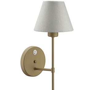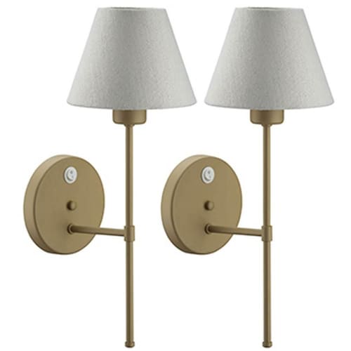 Kit 2 Abajures de Parede Dourados com Interruptor Arandelas Internas Tecido Natural Quartos Cabeceiras