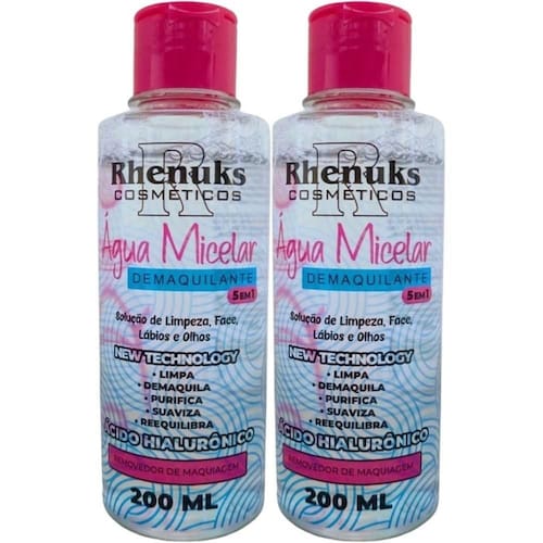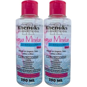 Kit 2 Água Micelar Demaquilante C Ácido Hialurônico 200ml Água Micelar Demaquilante 5 em 1 Limpa Demaquila 200ml Suave
