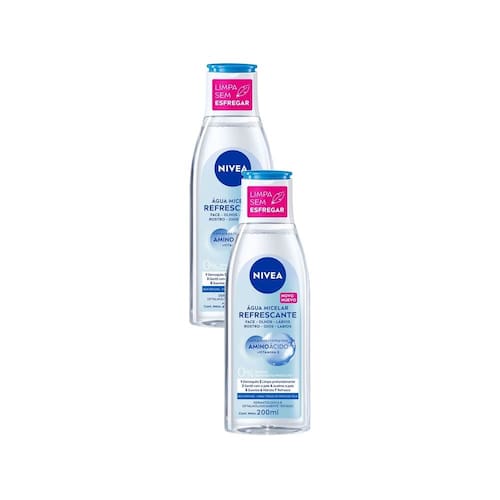 NIVEA Água Micelar Solução de Limpeza 7 em 1 200ml O que é? Água micelar que oferece 7 benefícios em um só produto. Limpa, hidrata, suaviza, tonifica, demaquila, acalma e refresca. Você precisa desse cuidado. Garanta a sua! Para que serve o Água Micelar Nivea 7 em 1? Com poderosa, esta solução de limpeza todas as fórmulas de composição da pele, inclusive, resíduos de composição. Não deixa a pele oleosa. Benefícios e benefícios - Sem perfume - Não precisa enxaguar depois de usar - Para todos os tipos de pele Como usar o Água Micelar Nivea 7 Em 1? Agite antes de usar. Com os olhos fechados, aplique a loção com algodão, limpando rosto, máscara e pálpebras. Use pela manhã e à noite.