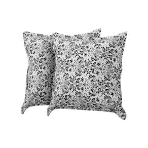 Kit 2 Almofadas Decorativas Bali Linho Floral Branco e Preto