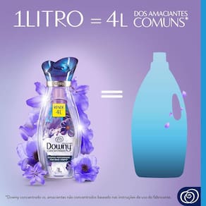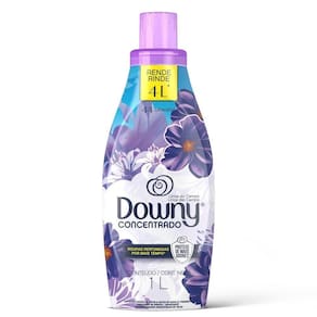 O seu Downy roxo, Lírios do Campo, é concentrado, ou seja, todos seus ingredientes da fórmula têm menos água e estão em maior concentração, por isso que ele rende muito mais^ que o mesmo volume dos amaciantes diluídos comuns. O Downy 1L é muito econômico e rende até 44 lavagens se utilizado conforme a orientação da embalagem.