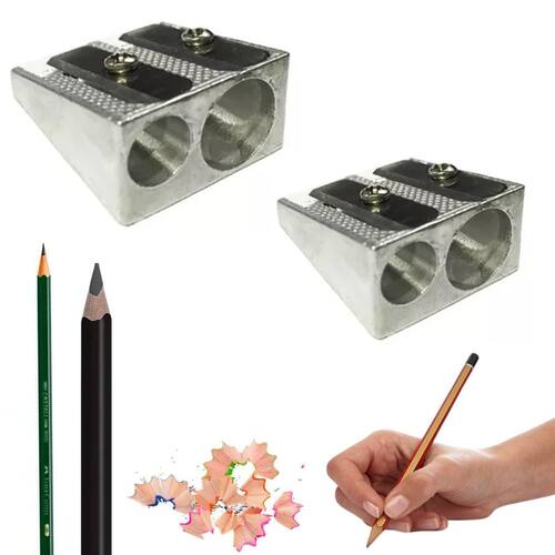 Kit com 2 Apontadores Duplos de Metal Lápis Comum e de Maquiagem