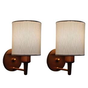 Kit-2 Arandela Cilíndrica Md-2009 Base Cobre Cúpula Em Tecido 14x15cm Branca - Bivolt