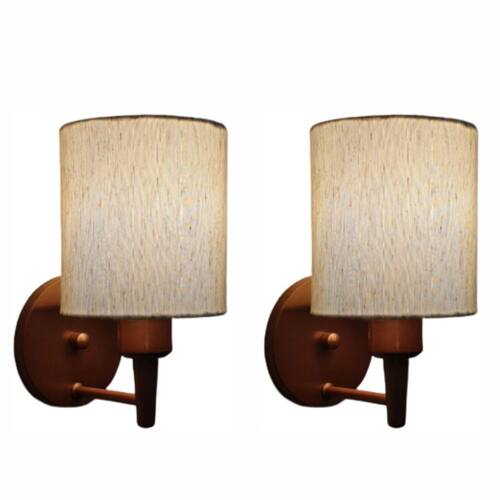 Kit/2 Arandela Cilíndrica Md-2009 Base Cobre Cupula em Tecido 14x15cm Linho Bege - Bivolt