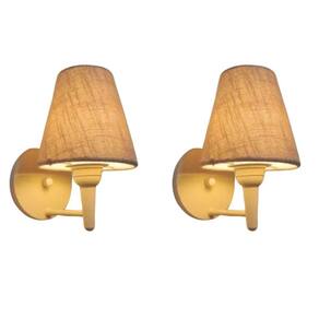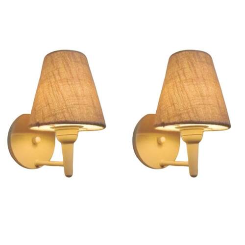 Kit/2 Arandela Cone Md-2004 Base Branco Cúpula em Tecido 14/14x07cm Rustico Bege - Bivolt