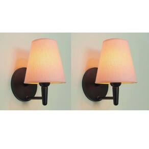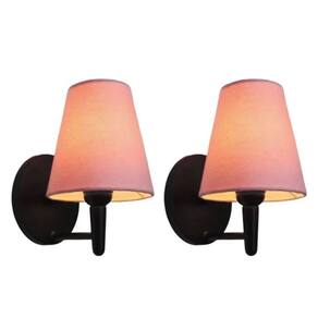 Kit/2 Arandela Cone Md-2004 Base Preto Cúpula em Tecido 14/14x07cm Rosa Tela - Bivolt