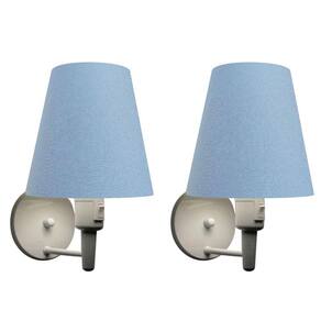 Kit-2 Arandela Cone Md-2013 Branco C- Inter Liga E Desl Cúpula Em Tecido Azul Bebê - Bivolt