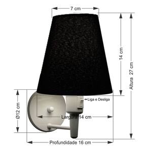 Kit/2 Arandela Cone Md-2013 Branco C/ Inter Liga e Desl Cúpula em Tecido Preto - Bivolt
