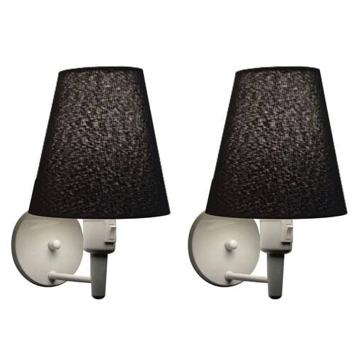 Kit-2 Arandela Cone Md-2013 Branco C- Inter Liga E Desl Cúpula Em Tecido Preto - Bivolt