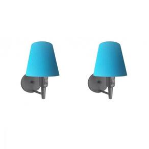 Kit/2 Arandela Cone Md-2013 Cinza C/ Inter Liga E Desl Cúpula Em Tecido Azul Turquesa - Bivolt